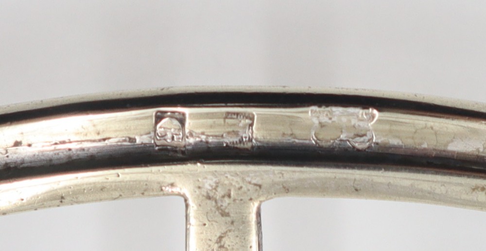 Good size, Victorian silverplated 7-bar/6-division toast rack; of Regency style, mounted on four bracket feet. The marks are unidentified but the piece is of superior quality.