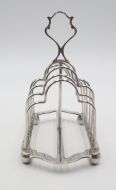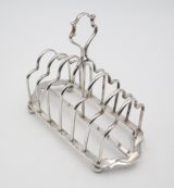Handsome, late Victorian, silverplated 7-bar/6-division toast rack; of rectangular form, standing on four ball feet. Really good quality and nicely marked. Sheffield. c.1890. George Waterhouse & Co. Length 17.5cm Postage; by Royal Mail Special Delivery free of charge for deliveries within UK; outside UK deliveries by quotation. Payment; by using the payment button on this item's description, or bank transfer, please contact us for our bank details. All items are professionally packed prior to posting. Please do not hesitate to contact us for any information regarding any of our stock items, we try to make our descriptions as informative as possible, but are always delighted to be of any further assistance. Internal Ref: 28/2265