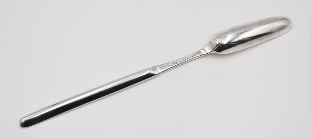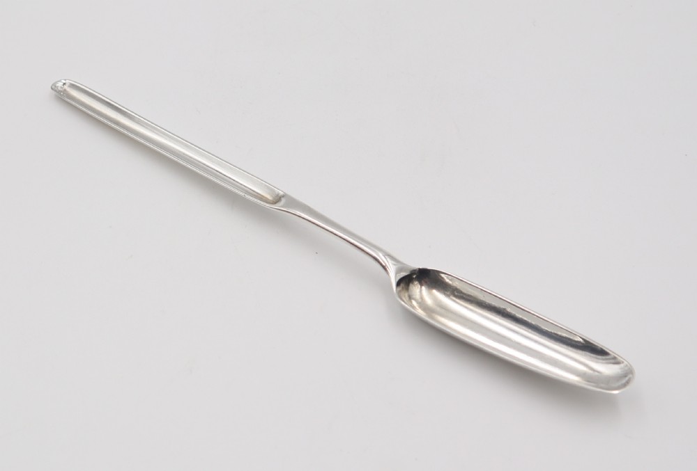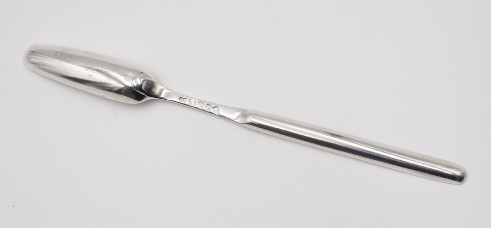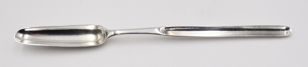 Geo.III silver marrow scoop; of typical plain design. Lovely condition with good clear hallmarks. London. 1793. Solomon Hougham. Length 23cm Postage; by Royal Mail Special Delivery free of charge for deliveries within UK; outside UK deliveries by quotation. Payment; by using the payment button on this item's description, or bank transfer, please contact us for our bank details. All items are professionally packed prior to posting. Please do not hesitate to contact us for any information regarding any of our stock items, we try to make our descriptions as informative as possible, but are always delighted to be of any further assistance. Internal Ref: 28/2269