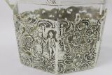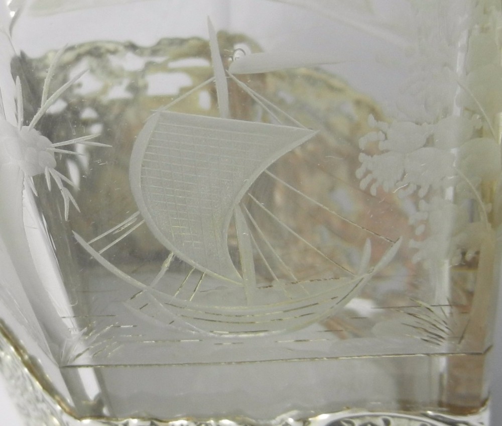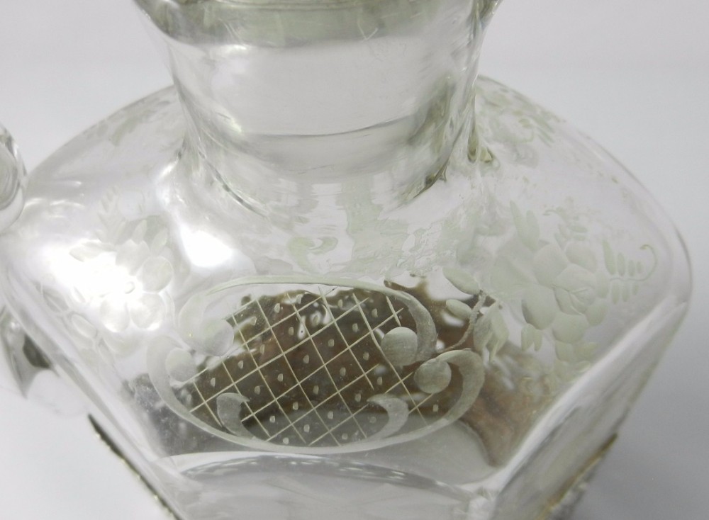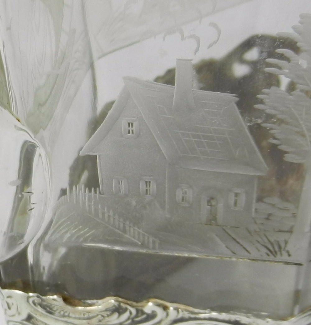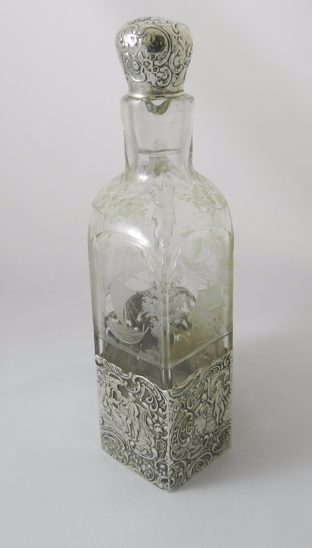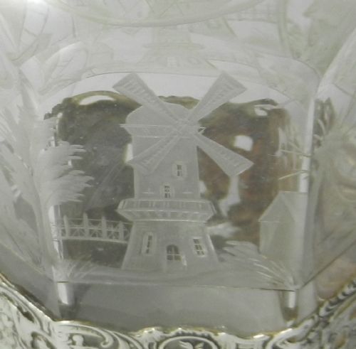 19th century silver-mounted, etched glass wine/liqueur/gin jug. In the Dutch style, this piece was made in Germany and has the most wonderful Dutch scenes etched in to the glass, the silver mounting is a riot of typical rural scenes of couples surrounded by foliate design. The glass stopper is similarly silver mounted. Just perfect! German (Hanau) c.1890, Wolf & Knell. Height 24.5cm Postage; by Royal Mail Special Delivery free of charge for deliveries within UK; outside UK deliveries by quotation. Payment; by using the payment button on this item's description, or bank transfer, please contact us for our bank details. All items are professionally packed prior to posting. Please do not hesitate to contact us for any information regarding any of our stock items, we try to make our descriptions as informative as possible, but are always delighted to be of any further assistance. Internal Ref: 28/1490