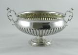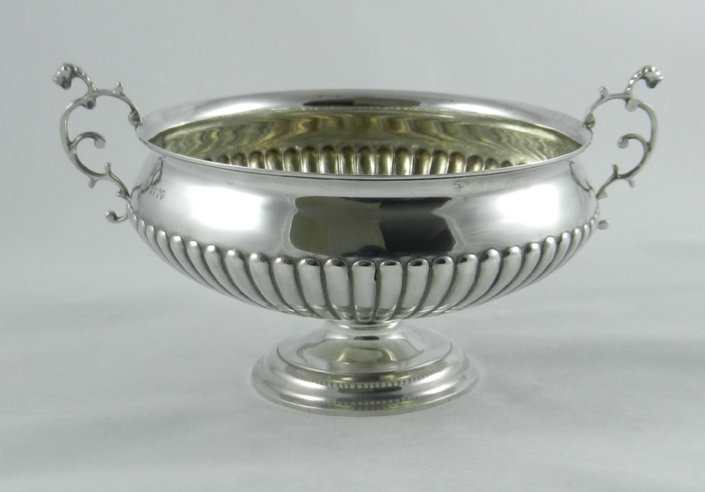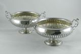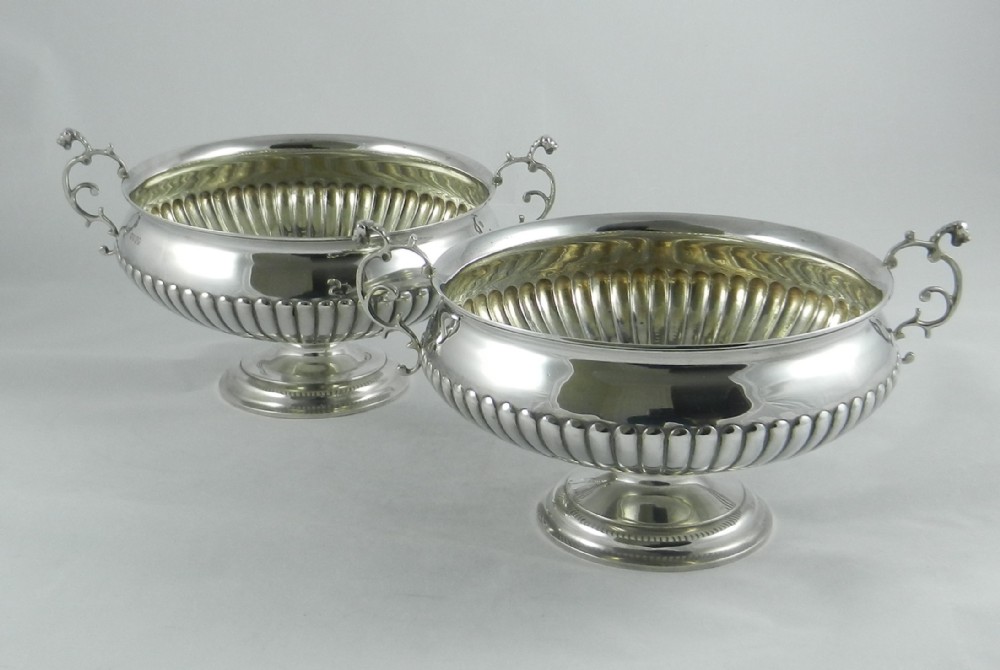 Pair of Victorian silver bowls; each of circular form set on circular pedestal feet with half-fluted decoration to the body. The side handles are of serpentine form; these bowls are ideal for fruit or floral displays, and are ideal for display at either end of a dining table or on a mantle piece. All the quality expected from this fine silversmith.