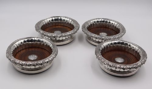 Set Of Four Silver Wine Coasters.